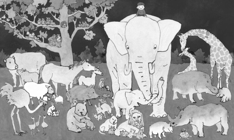 詩人まど・みちおの没後10周年を記念して生まれた絵本『ぼくが ここに』の原画を中心に、代表作の原画。および近作の絵画・立体作品で奏でる小宇宙。