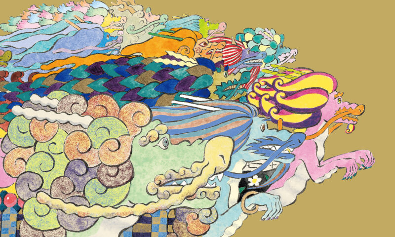きんきら輝く果物に、薬になるきのこ、美しい音色をかなでる琵琶に、登竜門の水の玉……